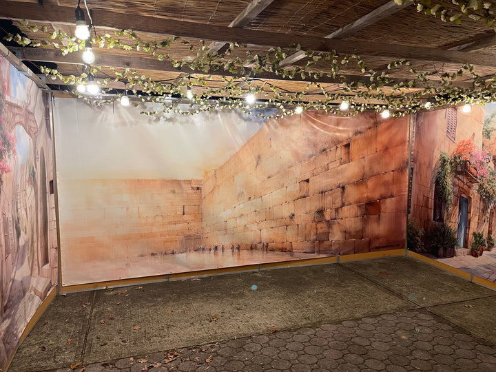 Bring the grandeur of the kosel to life with this vivid watercolor mural, perfect for gracing the walls of your sukkah.